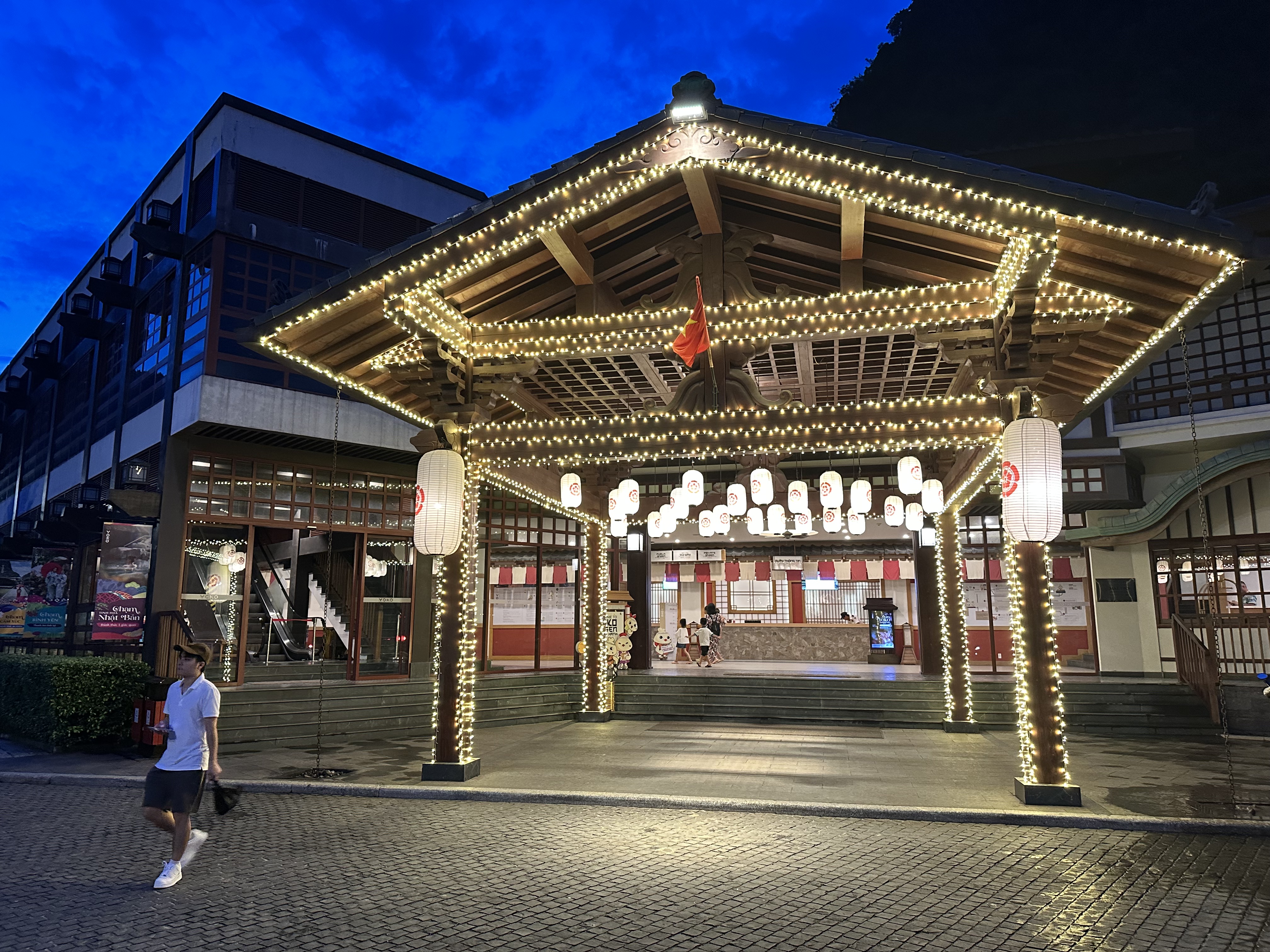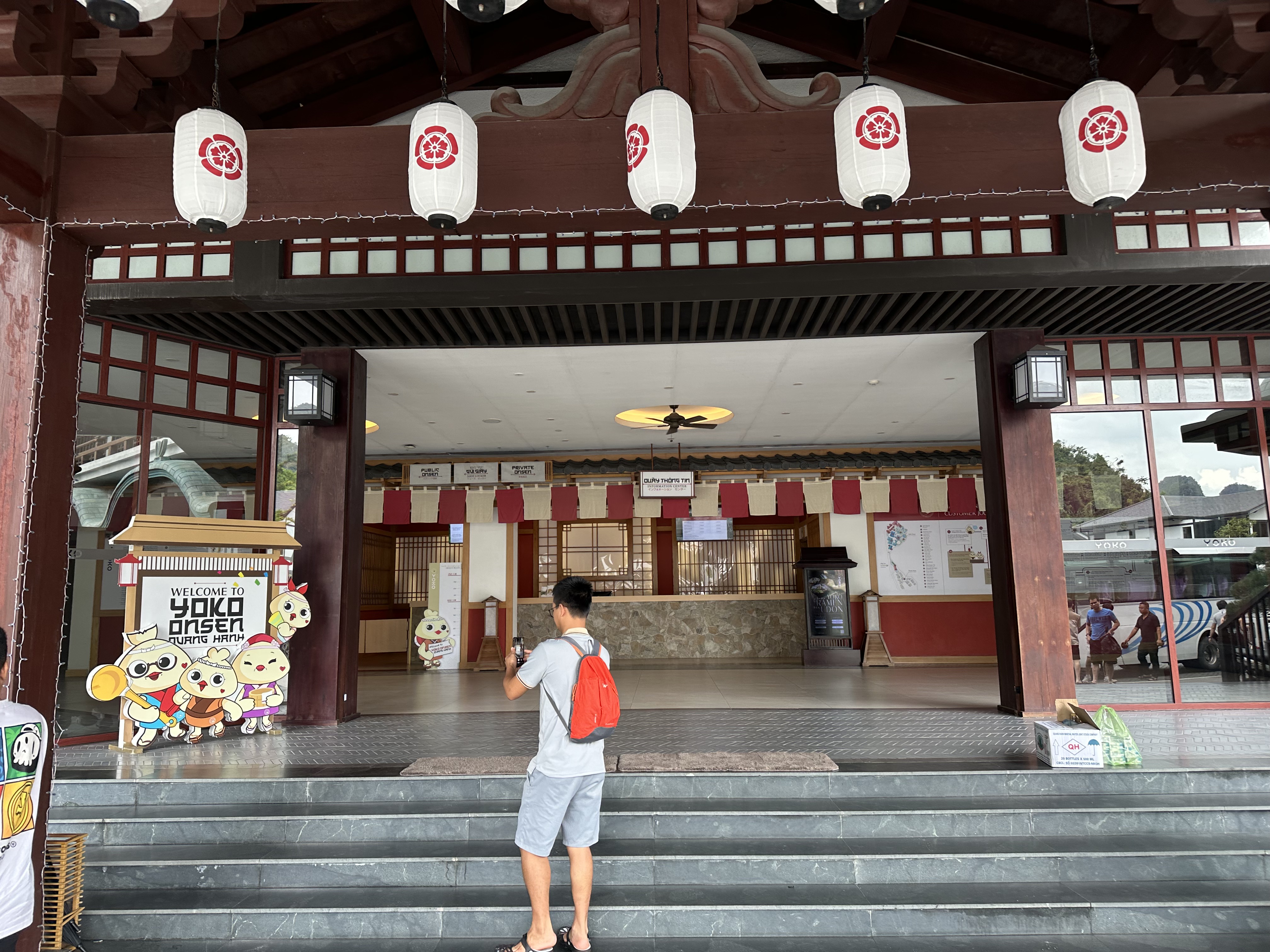 さて、クルーズ船に戻り、またまた同じレストランでバイキングの昼食を食べていよいよクルーズ船とはお別れです。陸に上がり、バスでホテルまで移動後、Yoko Onsen Quang Hanhなる、巨大なスーパー銭湯に行きました。名前を見るとわかりますが、日本の温泉をモチーフにした施設だそうで、海外でよくありがちななんとも中途半端なジャパニーズスタイルが散見される不思議な温泉施設です。夕食もここで食べるということで、たっぷりと時間があります。たくさんの風呂があり、サウナも何種類もあります。ただし、男女混浴なので、水着で入らなければならないのが少々微妙です。それにしても、水風呂が冷たい。冷たすぎて体が痺れました。夕食は、日本料理のバイキングでした。フォーとかいろんな種類のものがありベトナムのメンバーは楽しめたんじゃ無いかなと思います。