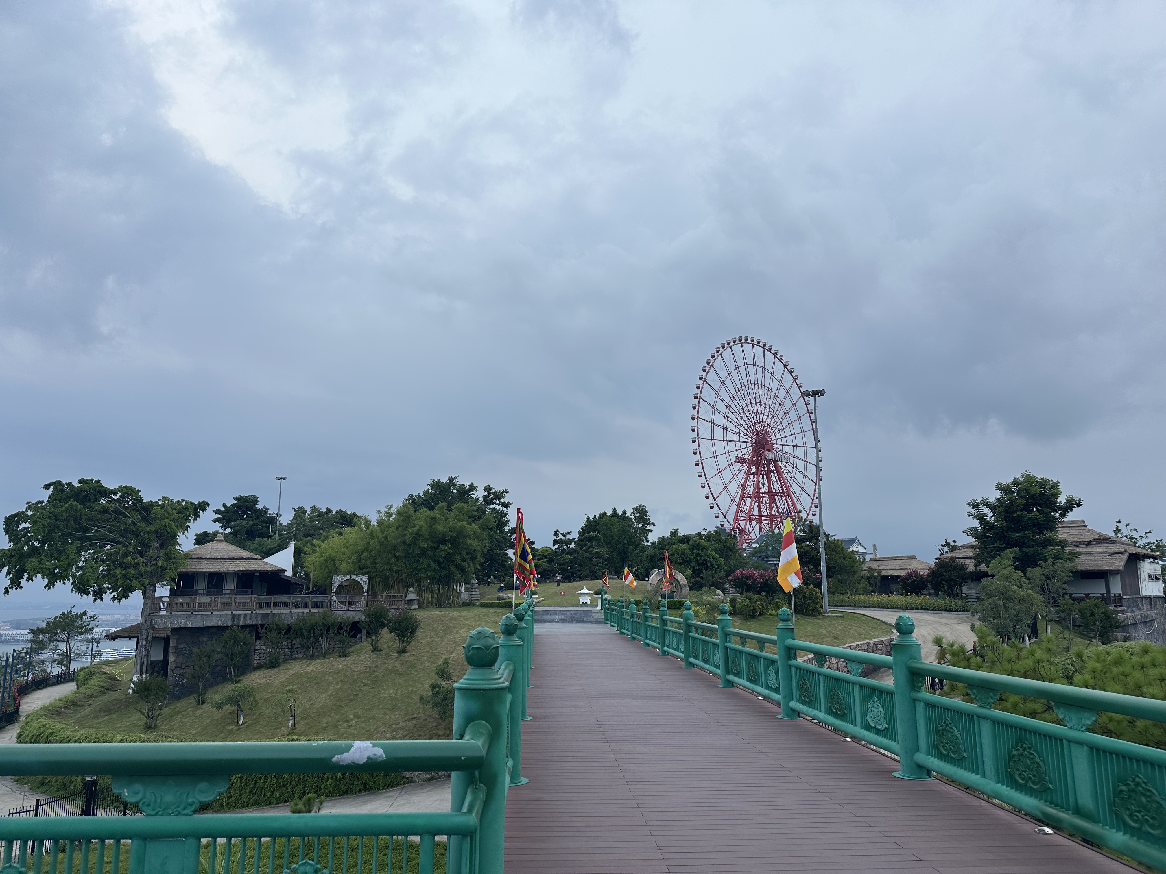 この2日でメインの旅程は終わり、3日目は自由行動です。我々日本人2名は、全く言葉が通じないこの地で、どうしていいかわかりませんでしたが、タンくんが終日同行してくれることになり、市内を循環している観光バスでサンワールドハロンというテーマパークに行くことにしました。途中、乗っていた2階建バスが交通事故に巻き込まれ、2階から降りてきた家族連れで1階がいっぱいになり、エアコンの効かない社内の暑さで子供たちが泣き叫び、そもそも声が大きいベトナムの人たちの怒鳴りあうようなやりとりも合わさって、阿鼻叫喚の様相を呈しました。あ〜やかましい!30分ほどして、ようやく事故処理が終わり目的地のテーマパークへ着きました。ここはここで結構な日本贔屓の建物も多く、これまた正直な話、日本人から見るとなんとも不気味なものも多かったですが、ベトナムの寺院などもあり、面白かったです。